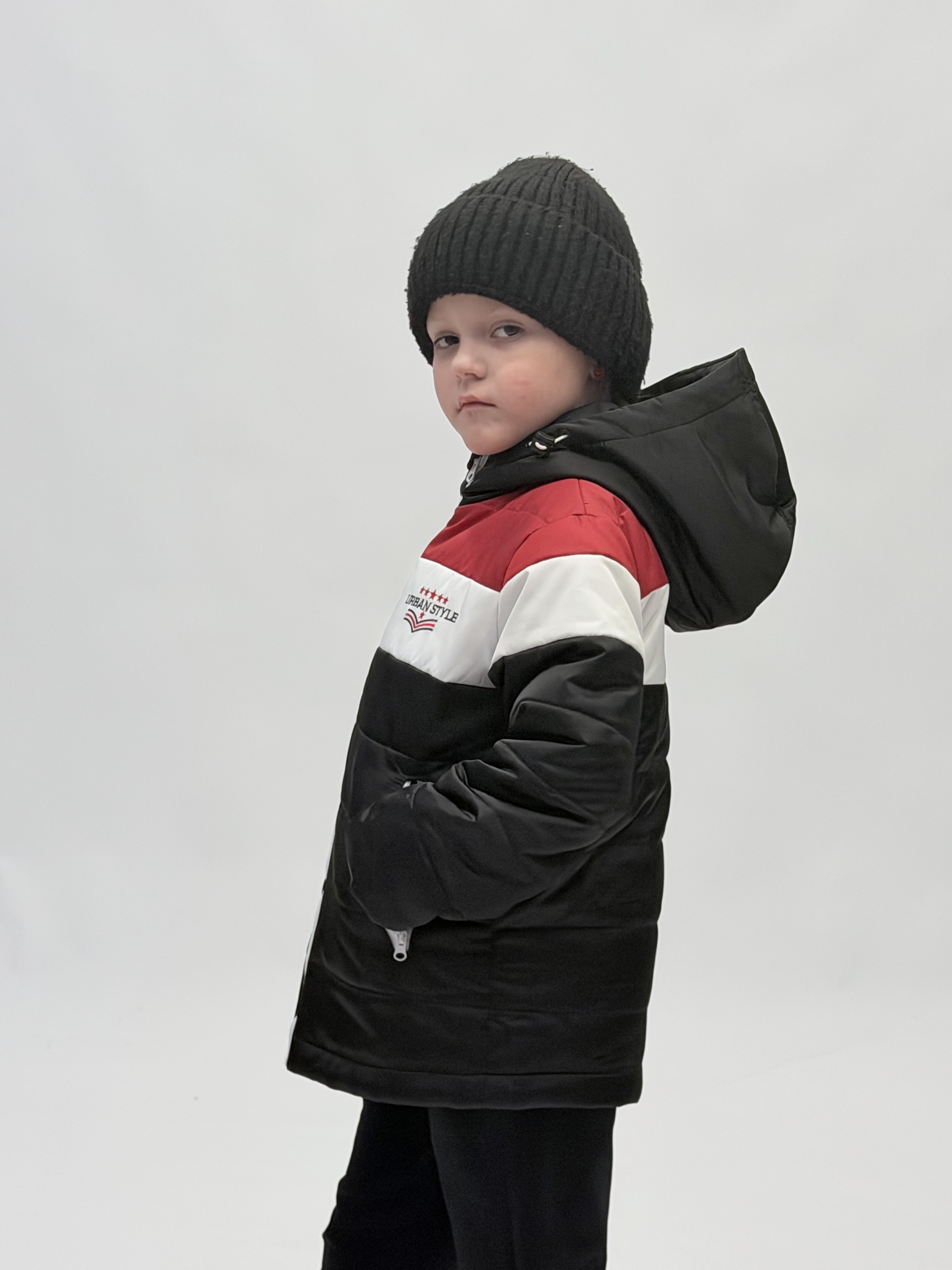 • капюшон пришит,  регулируется утяжкой на резинку